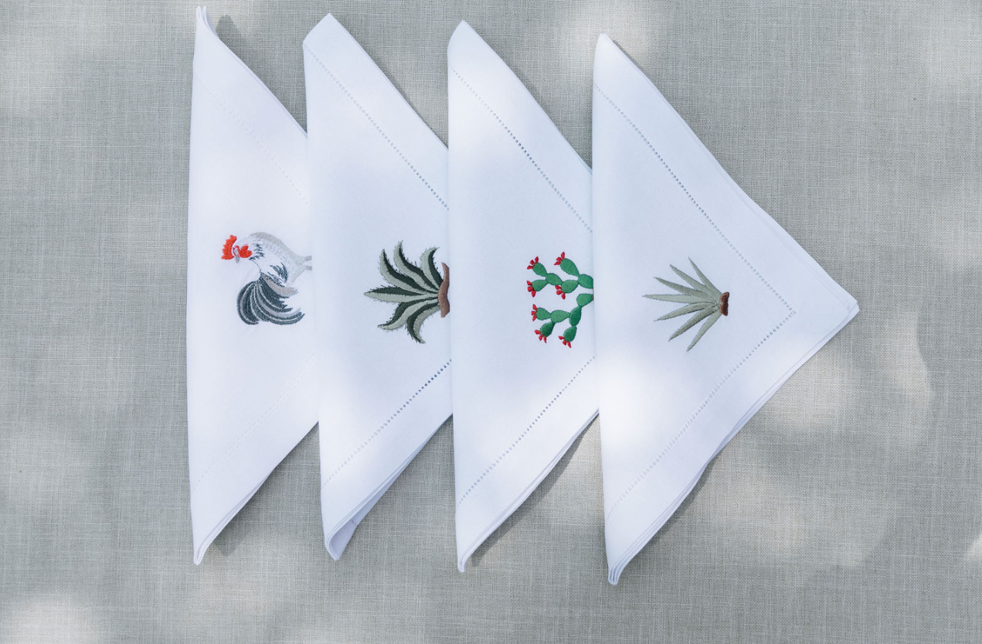 Servilletas de cocktail en lino con varios bordados y diseños.