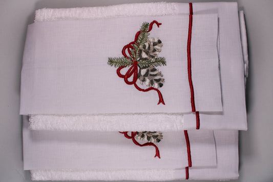 JGO 4 TOALLAS DECORATIVAS BORDADAS PIÑAS COLORES