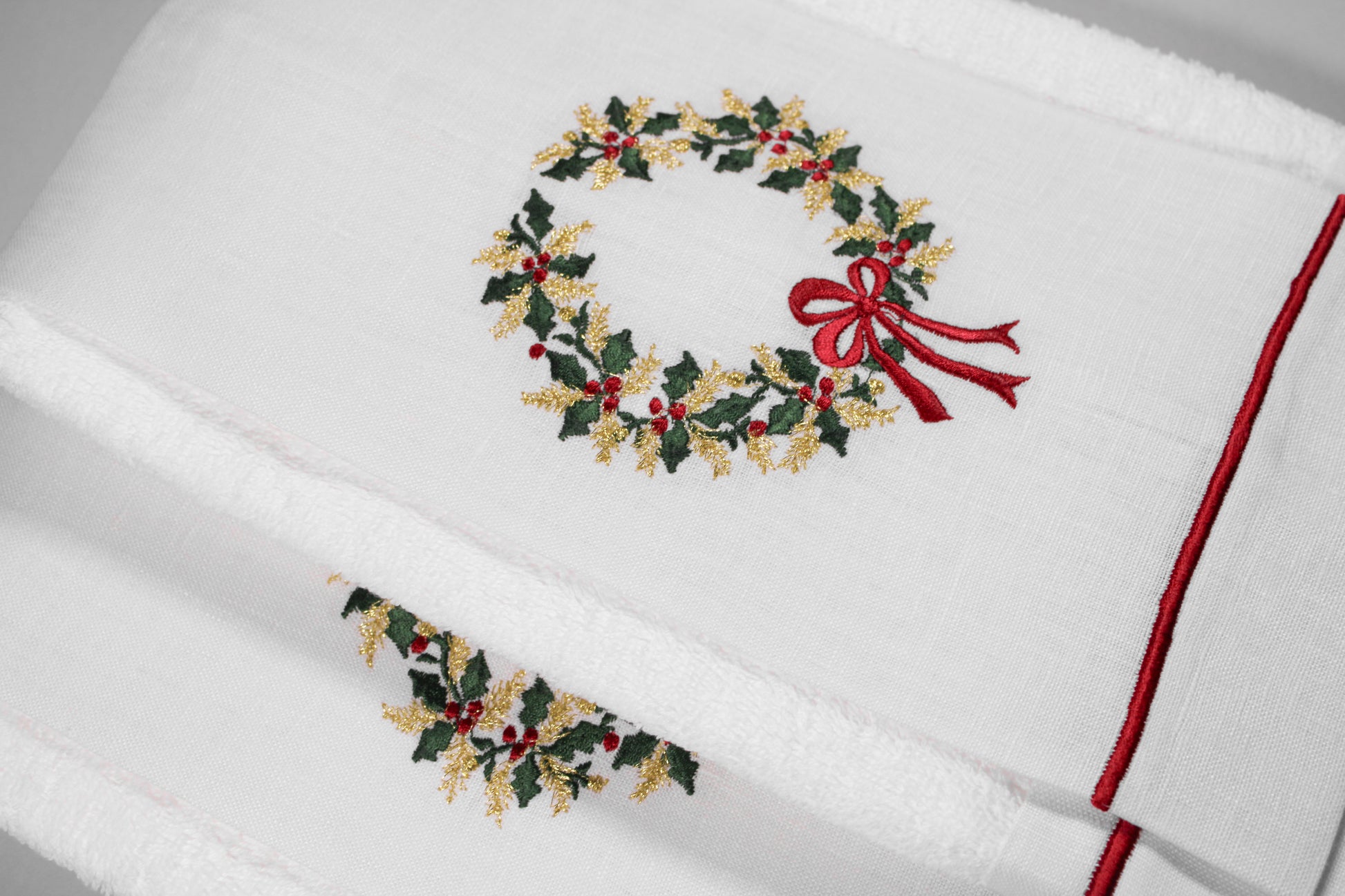 JGO 4 TOALLAS DECORATIVAS BORDADAS CORONA CORONA DORADA PLATEADA MOÑO ROJO