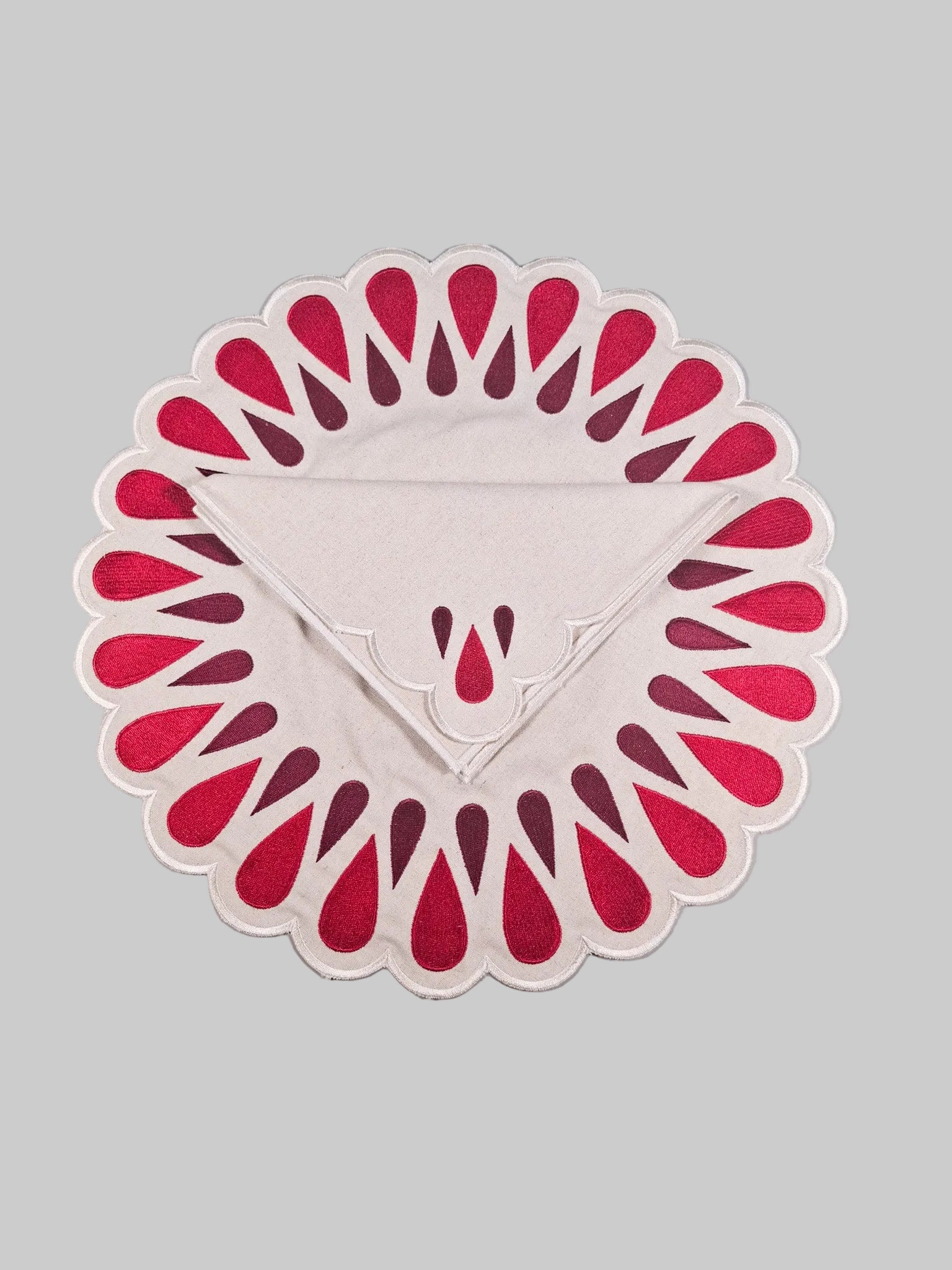 Juego de individuales redondo modelo gota en material mezcla de algodón con lino.