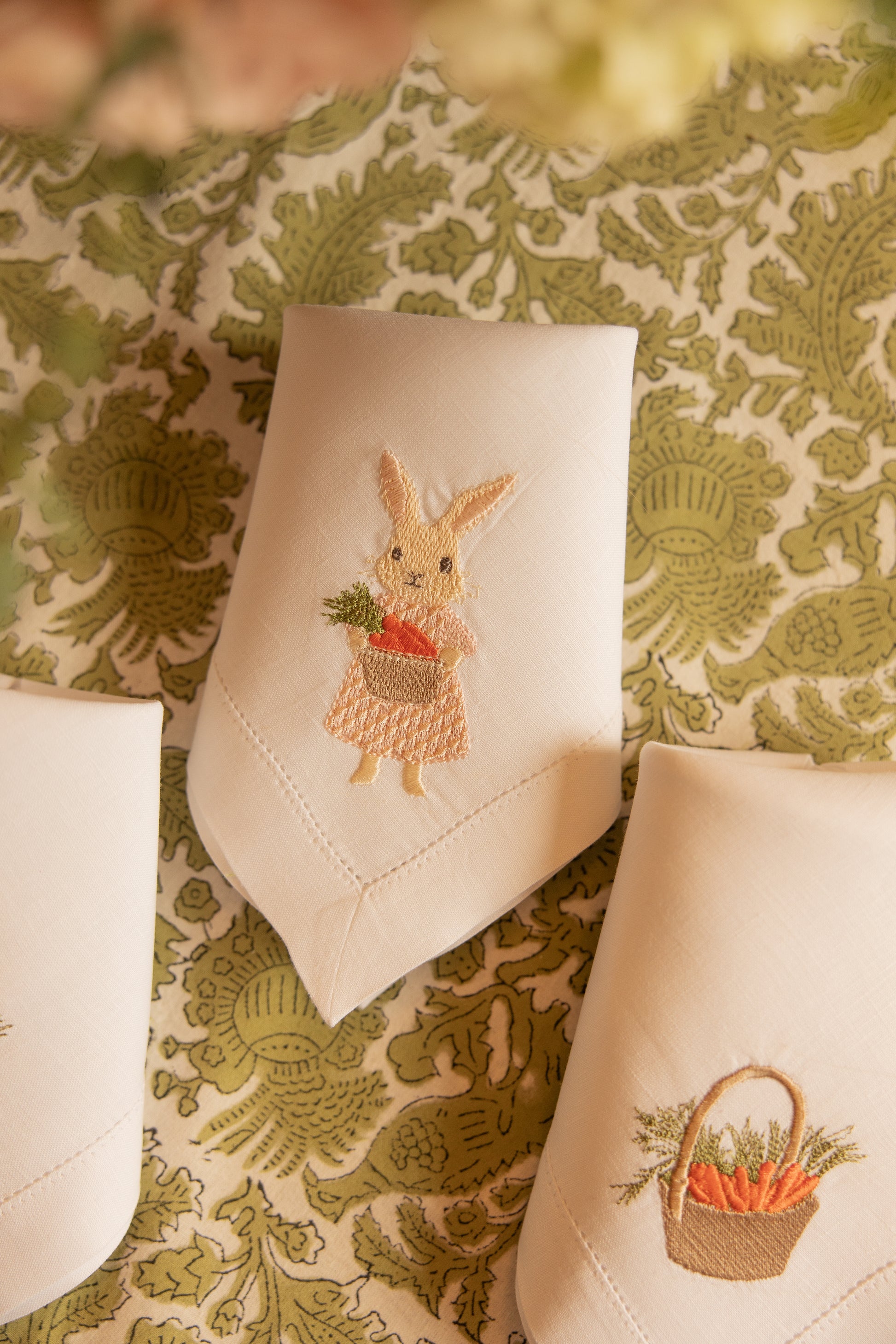 Juego de 4 servilletas con bordado de Pascua