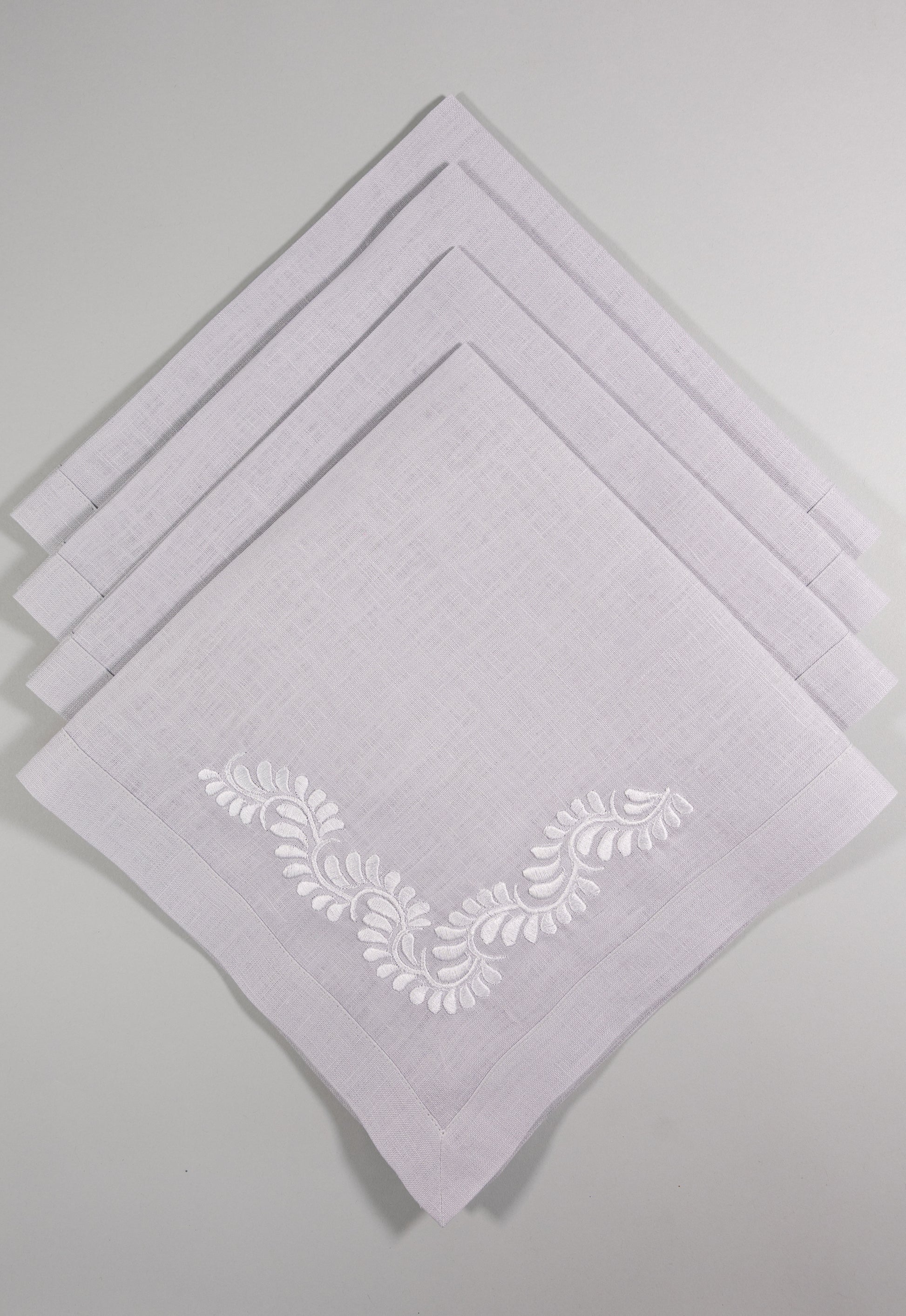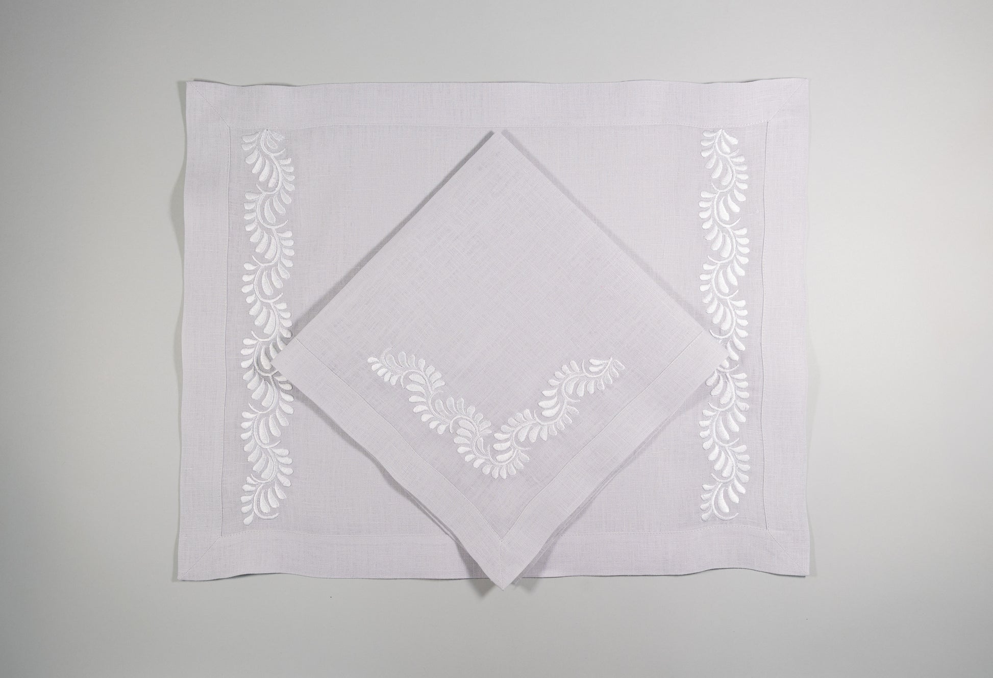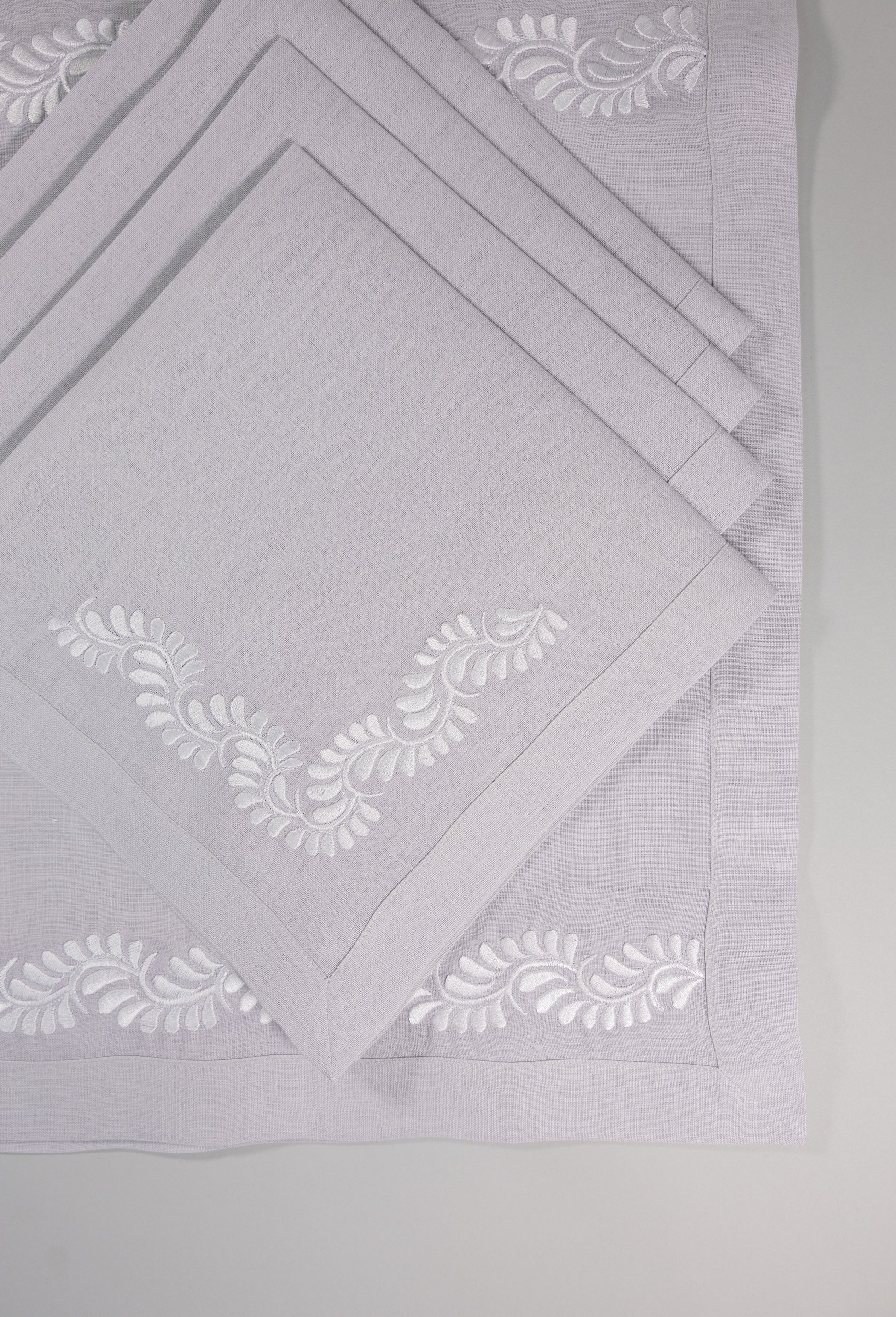 Juego de 4 individuales con 4 servilletas de lino l Bordado talavera en Gris.