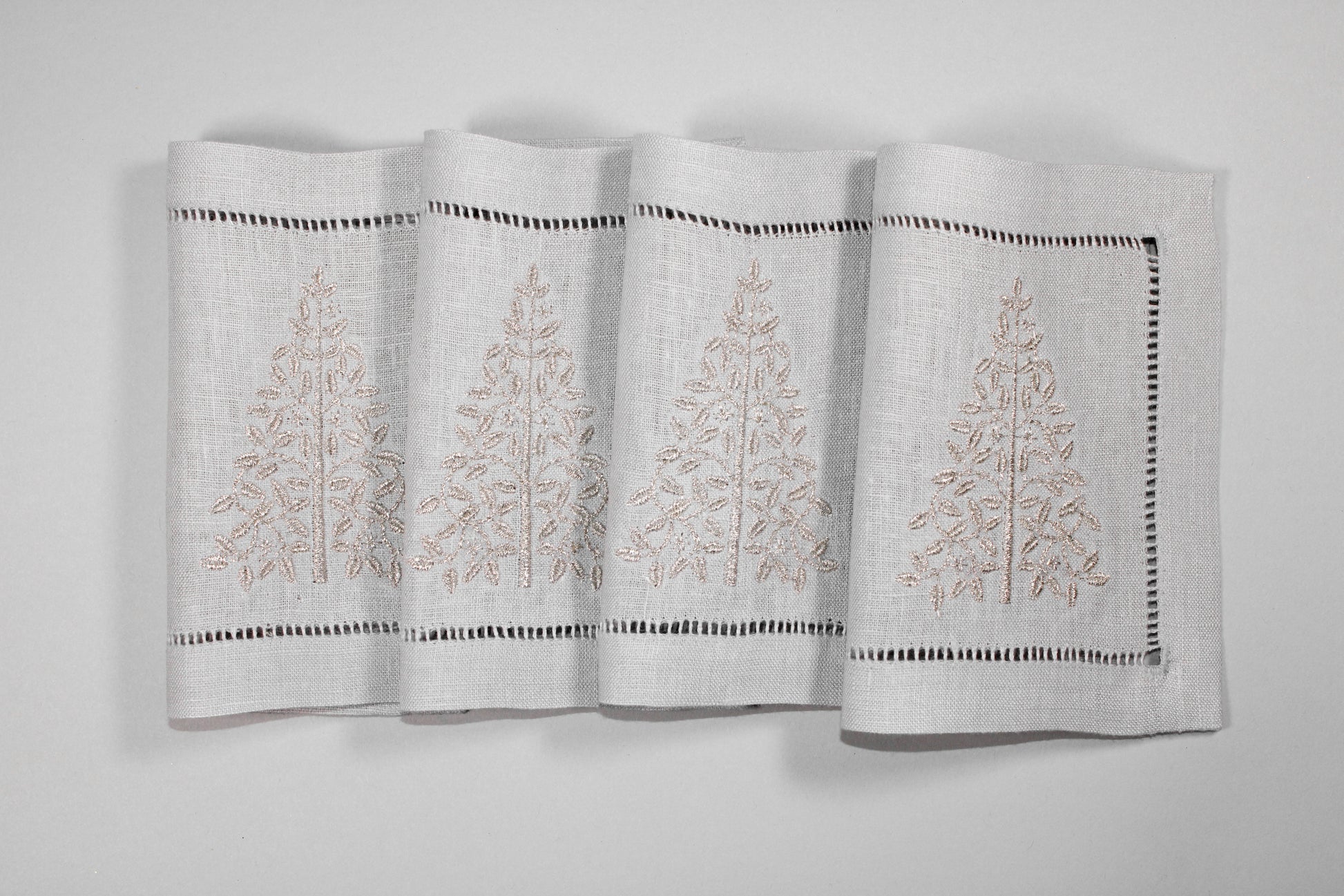 Juego de 4 servilletas de lino rectangulares con diseño de Arbol dorado sobre lino beige