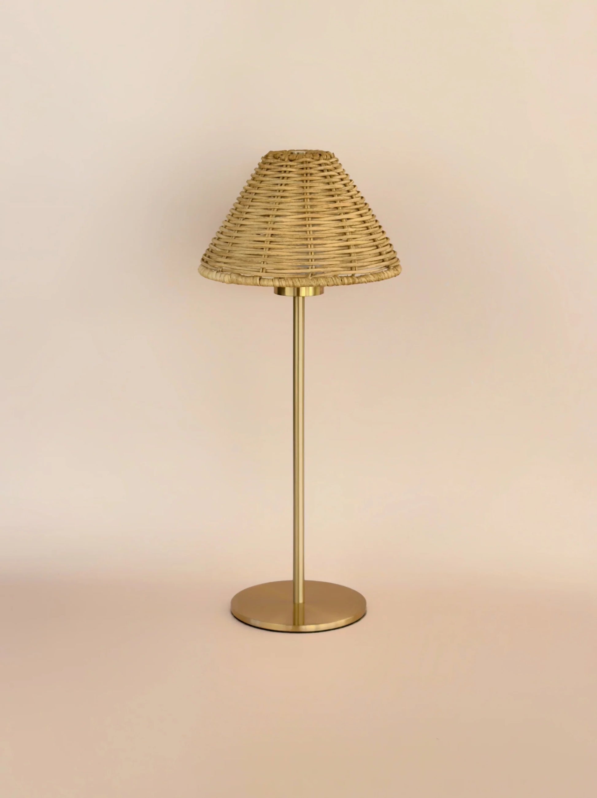 Lampara con pantalla de ratán, recargable. Cable incluido.