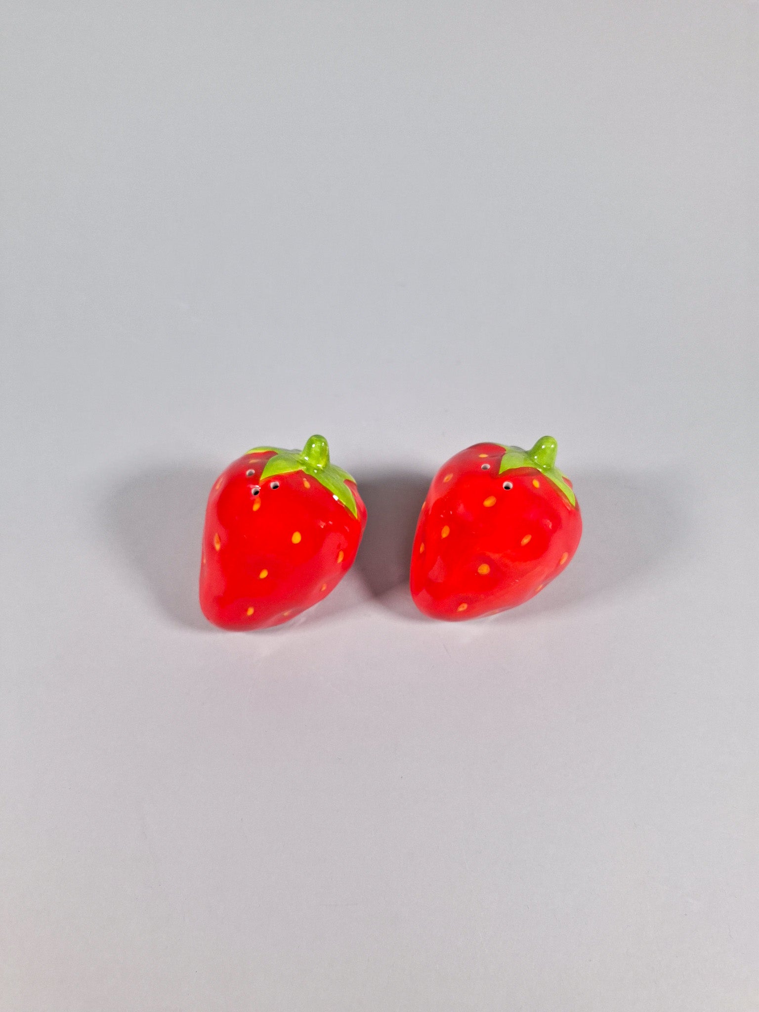 Par de salero y pimentero de fresa en cerámica.