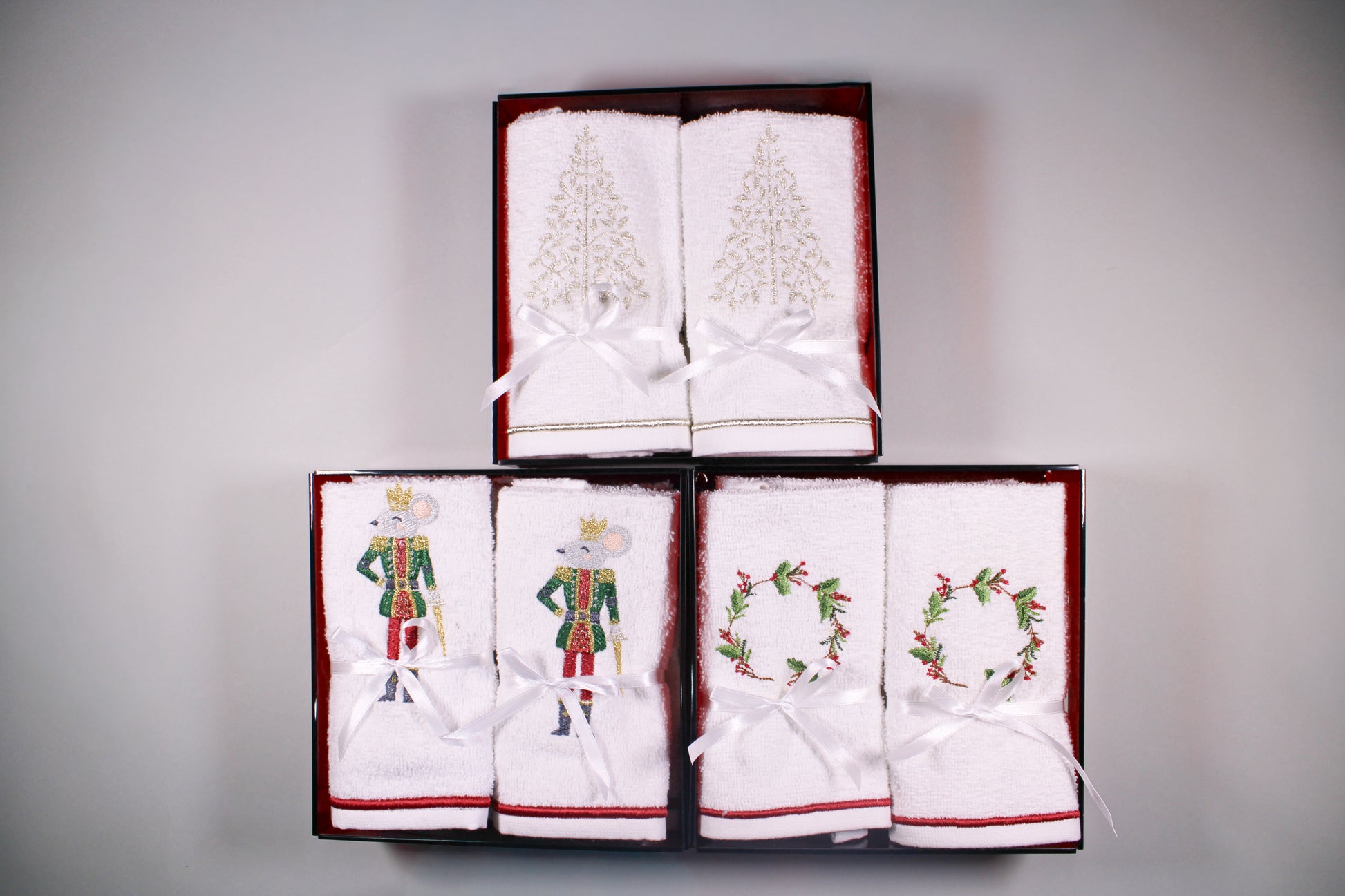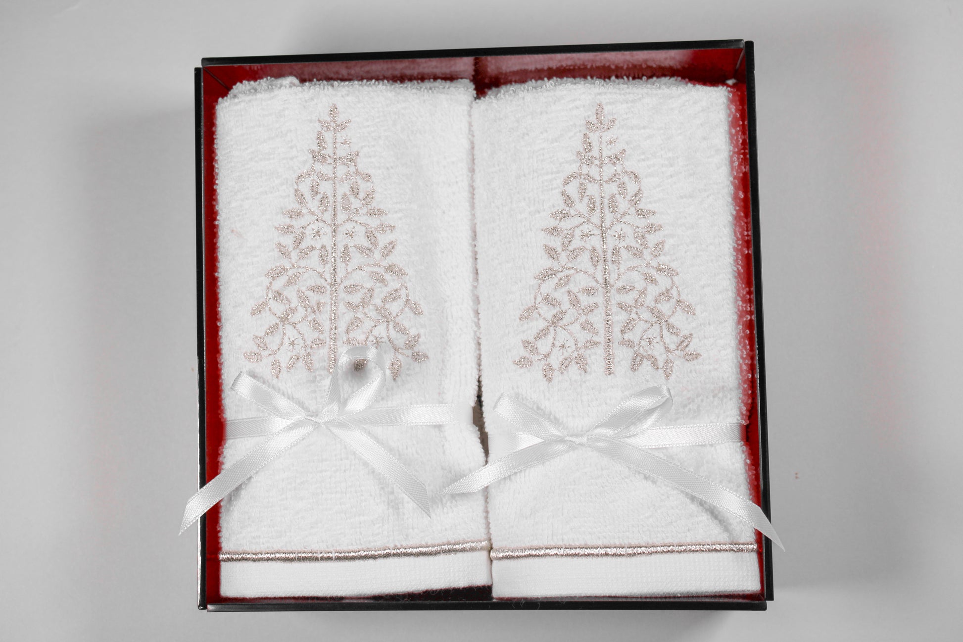 SET CHAROLA 4 TOALLAS FACIALES CON DISEÑO DE ARBOL PLATEADO